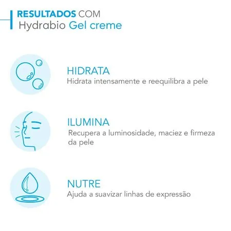 Hydrabio Gel Creme foi desenvolvido com uma combinação de ativos que promovem eficácia imediata e duradoura. A Niacinamida reforça a barreira protetora da pele. A Vitamina E fortalece as defesas antioxidantes. O Esqualano e Glicerina compensam a deficiência de hidratação e favorecem a retenção de água na pele. O complexo patenteado Aquageniumtm potencializa o mecanismo natural de hidratação da pele. Graças a sua ação suavizante em textura gel-creme leve de rápida absorção, Hydrabio Gel Creme hidrata intensamente e melhora a luminosidade da pele. Intensamente hidratada e reequilibrada, a pele recupera sua luminosidade, maciez e firmeza. Ajuda a suavizar a aparência de linhas de expressão. Aplicar na pele limpa, de manhã e à noite, no rosto, pescoço e colo. Ideal para peles normais à secas após higiene com Hydrabio H2O. Ótima base de maquiagem. Aplicar na pele limpa, de manhã e à noite, no rosto, pescoço e colo. Ideal para peles normais à secas após higiene com Hydrabio H2O. Ótima base de maquiagem. Não comedogênico.