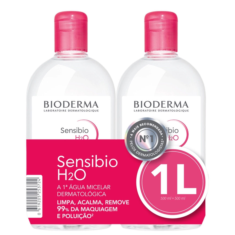Kit com água micelar calmante para todos os tipos de pele. Bioderma Sensibio H2O Duo é ideal para remover a maquiagem e impurezas da pele enquanto acalma e preserva a proteção natural cutânea. A Água Micelar Calmante Bioderma Sensibio H2O é pioneira no segmento e indicada por dermatologistas do mundo todo. Com fórmula exclusiva, minimalista e icônica, enriquecida com micelas, que são moléculas com ésteres de ácidos graxos que capturam as impurezas respeitando o equilíbrio da pele e seus fosfolipídios. Garante excelente tolerância, combate o desconforto e refresca a pele enquanto descongestiona profundamente os poros, o produto assegura higiene fisiológica completa, suavidade ímpar, beleza estonteante e proteção sem igual. Fórmula hipoalergênica e livre de óleo, álcool, perfume, sabão e parabenos. Indicada para todos os tipos de pele, especialmente as sensíveis. Testada sob controle dermatológico e oftalmológico. Contém: Bioderma Sensibio H2O Calmante – Água Micelar 2x500ml Como usar: Embeber o algodão, aplicar delicadamente na pele para retirar impurezas, sujeira ou maquiagem. Reaplique até que o algodão saia completamente limpo. Sensibio H2O pode ser usado pela manhã e noite, sete dias por semana.